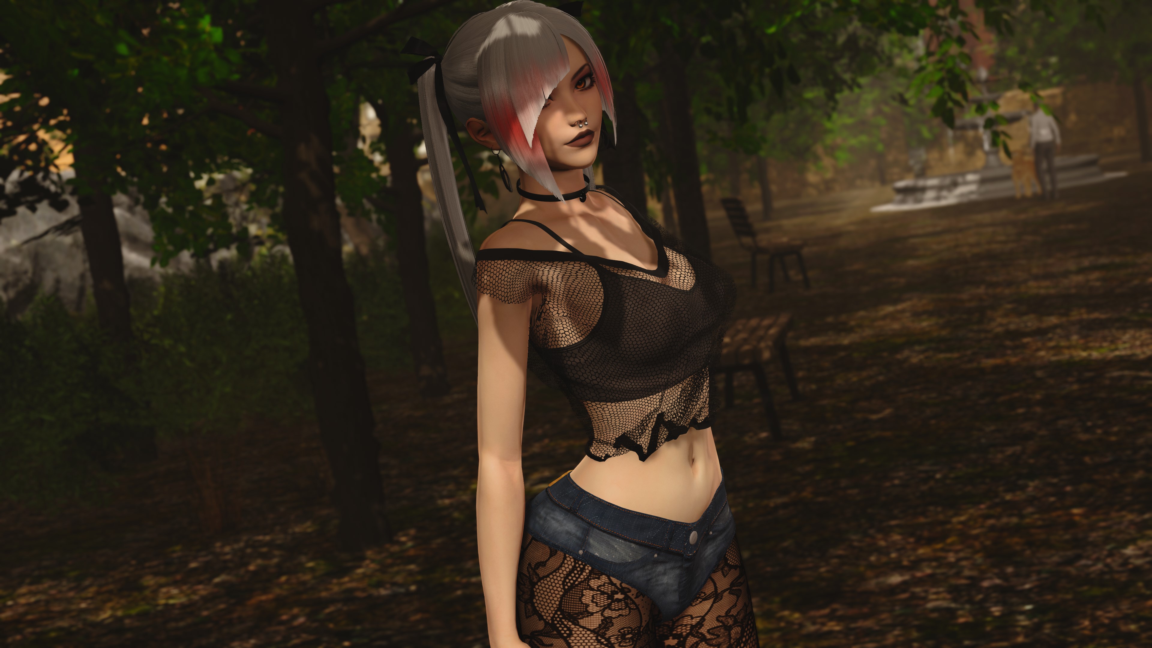 I'll say right of the bat, the big 3 as I call them aren't as easy as I thought. Starting with Avis's park section took much longer, previous map just had some issues I hated so I kept trying to tweak it again and again and again. And her outfit, which I know a lot of people adore, had tons of issues I just... Kinda cheated around previously pre-rework. Why was it so dark, aka the charcoal joke previously? Well, because I made it intentionally as dark as possible to hide all the clipping and imperfections with the top, and even clipping and issues with pantyhose too. That no longer slides with me, so I went down and redid the outfit. But(t) I think it's much better now, and more fitting for still overly hot weather so top is much more open sleeved and all. No Clipping either after spending time in Blender fixing. I included one pic freebie so ppl don't freak out, obviously the buttastic bottom remains.
